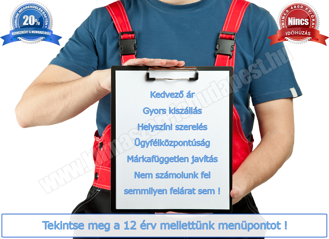 - Ha nem történik javítás, akkor Budapesten csak a 9.500 Ft-os kiszállási díjat kell kifizetnie. Pest megye esetén 12.000 Ft-ba kerül ez a díj.